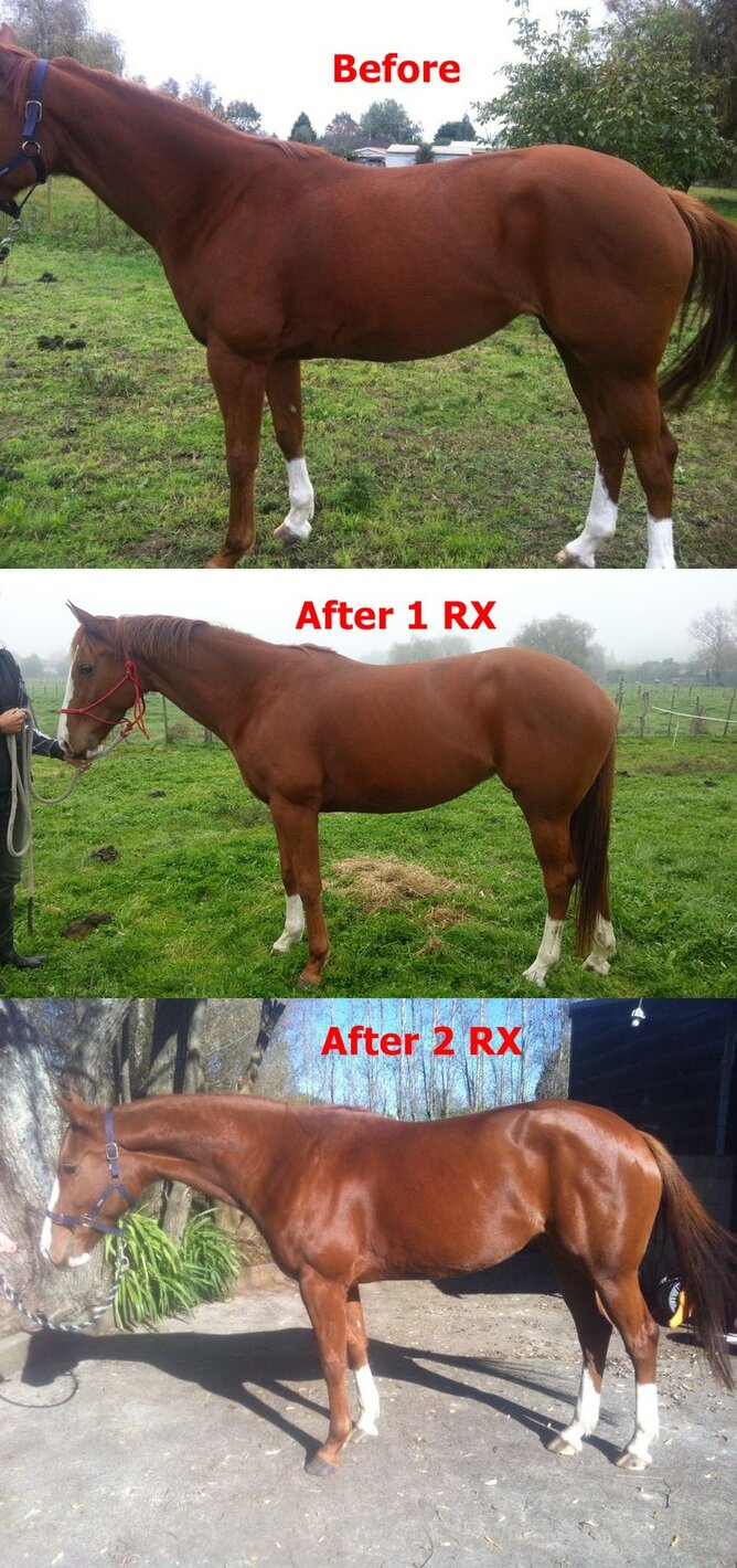 Changes on a horse who was exhibiting pain over Lumbar area and tight Fascia