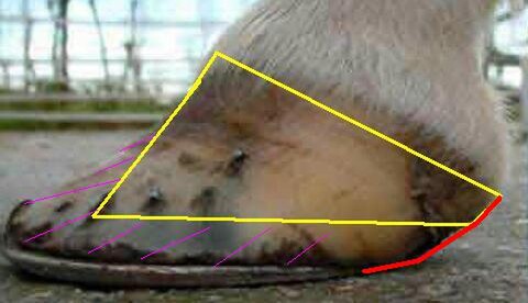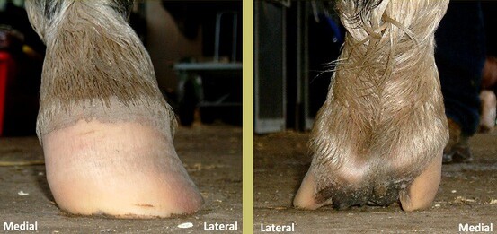 Contracted heels should be differentiated from collapsed heels. Heel contracture can become a secondary source of lameness, worsening the lameness grade, effecting the cycle of abnormal landing, foot dysfunction and lameness.